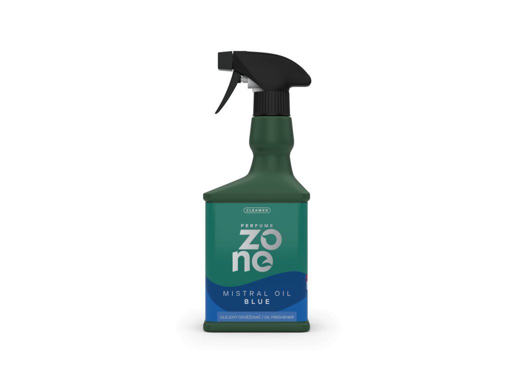 CLEAMEN PERFUME ZONE Mistral oil blue je jemný, ale mimořádně účinný olejový osvěžovač vzduchu navržený pro WC, koupelny i frekventované veřejné prostory. Díky olejové bázi vůně uvolňuje postupně, takže provonění vydrží výrazně déle než u běžných sprejů. Stačí jej nastříkat na nesavé povrchy – například vnější část toaletní mísy, nádobku WC štětky či keramické obklady. Originální parfemace zanechá intenzivní a čistý pocit svěžesti, který se v prostoru drží.