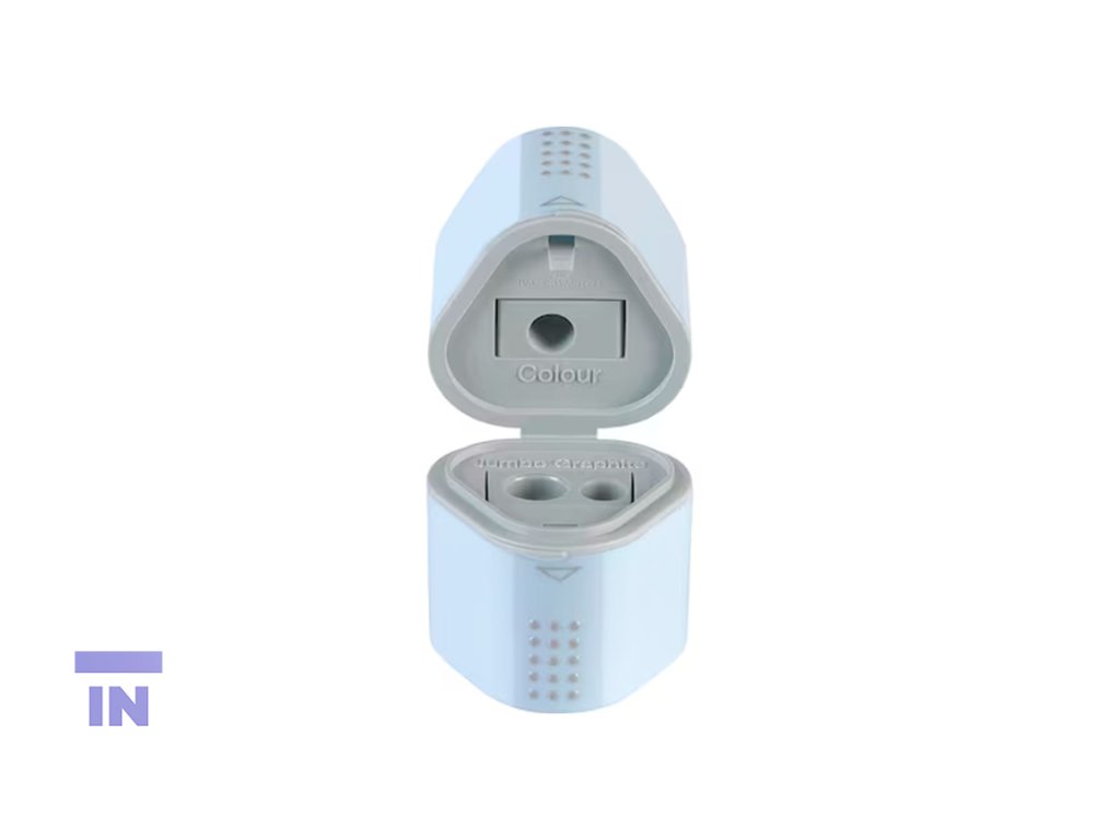 Ořezávátko má zásobník na odřezky na obou stranách, takže je praktické pro školní i domácí použití.