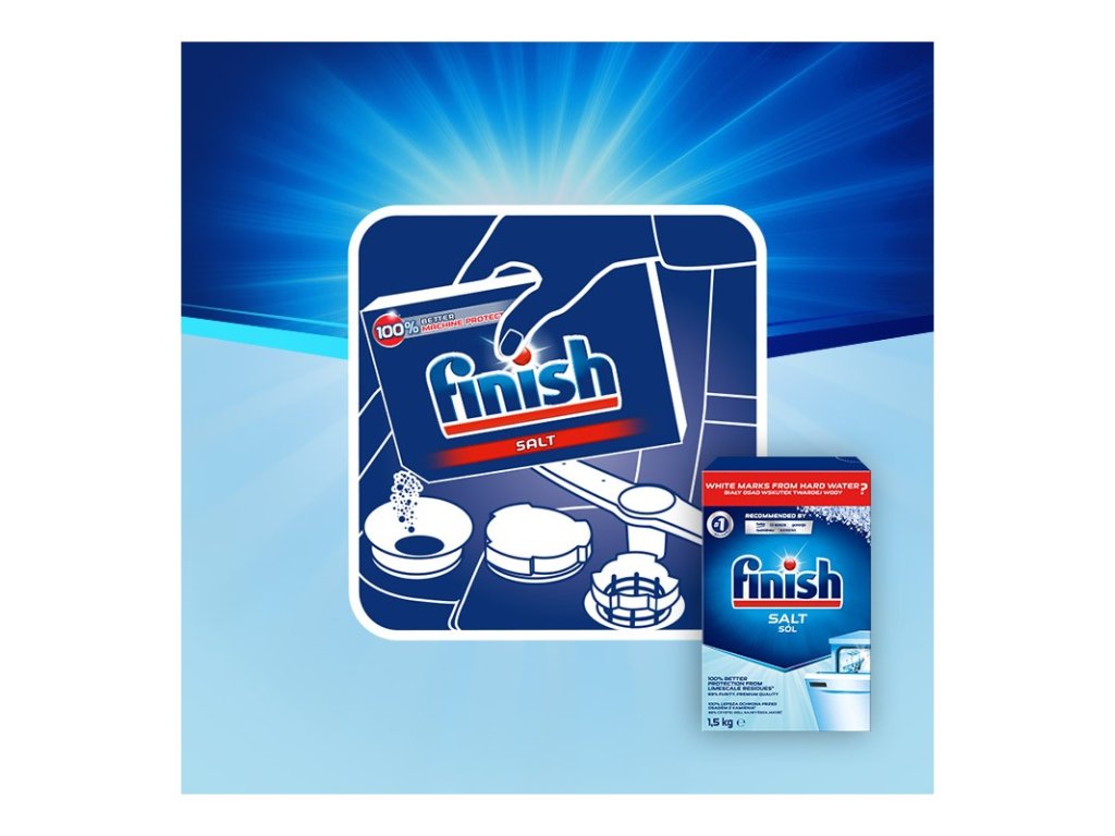 Finish sůl do myčky nádobí je nezbytným pomocníkem pro správnou funkci myčky a perfektní výsledky mytí. Obsahuje velké granule, které účinně změkčují vodu a podporují maximální účinnost mycích tablet a gelů. Pravidelné používání soli pomáhá chránit myčku i nádobí před usazováním vodního kamene.