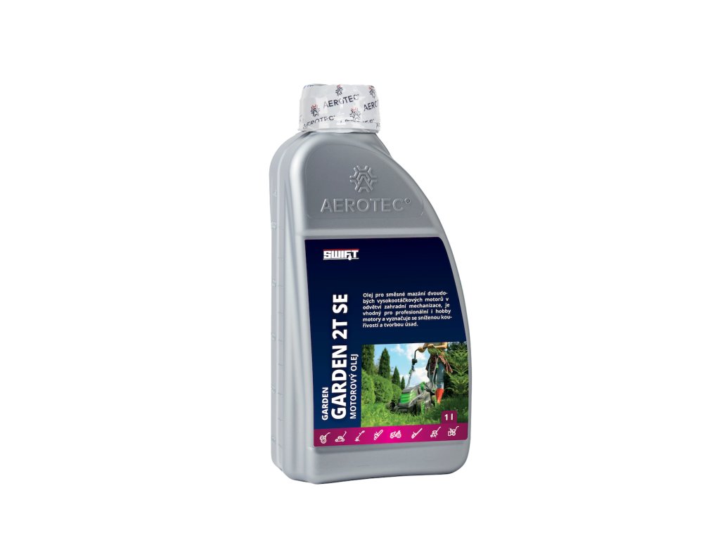 AEROTEC® GARDEN 2T SE - je polosyntetický olej vyrobený hydrogenační metodou, při které byly použity vysoce jakostní ropné oleje, ředící složky z PIB (polyisobutylen – nahrazuje viskózní olej, který byl v minulosti příčinou vzniku karbonových úsad) a další zušlechťující přísady, které zajistí dokonalou mazivost benzínové směsi a udrží motor v dokonalé čistotě po velmi dlouhý časový úsek.