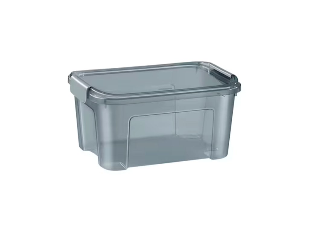 Úložný box z recyklovaného polypropylenu je ideální volbou pro organizaci spotřebního materiálu, nářadí i běžných domácích nebo kancelářských potřeb. Průsvitná kouřově šedá stěna umožňuje kontrolu obsahu bez otevírání a pevné klipové víko chrání uložené věci před vlhkostí, prachem i mechanickým poškozením.